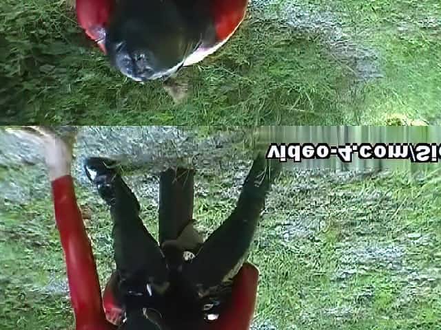 Butt toying in latex during a hike in the nature