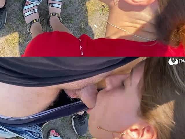 Quick cock sucking during an outdoor hiking trip