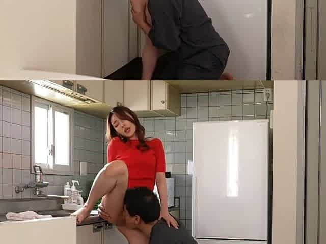 Lady in red quickie kichen sex