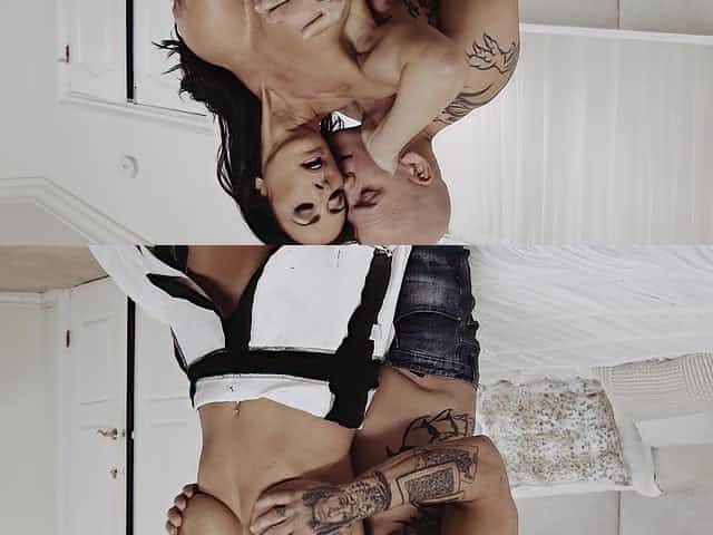 Wild fucking between a tattooed guy and busty cougar Reagan Foxx