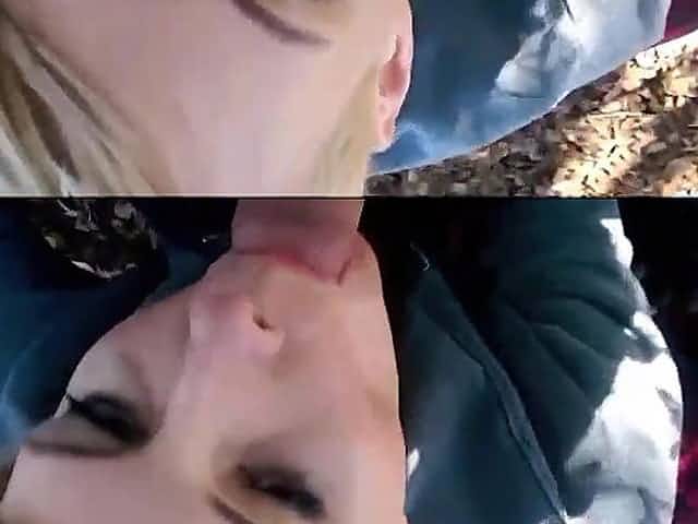 Cocksucking outdoors with cum on face