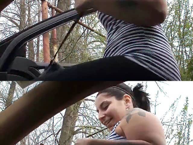 Unexpected and passionate sex in a car in the forest