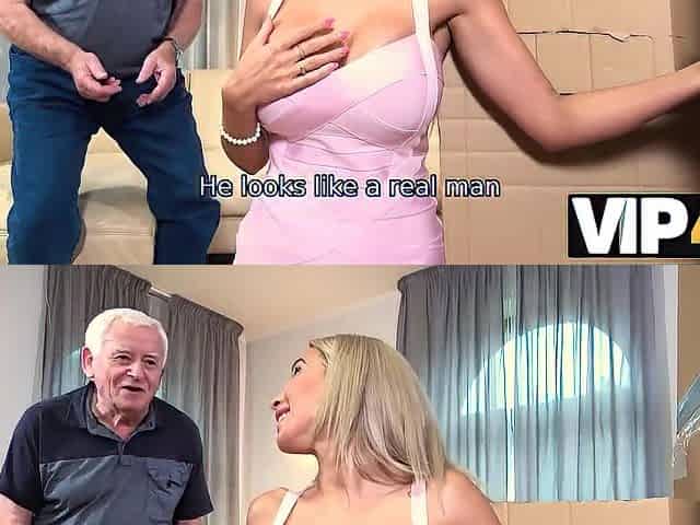 VIP4K. Old chap looks glad whilst his wife having sex with realistic robot