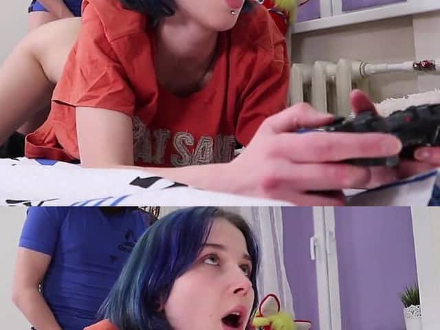 Bangs a teen during the time that this babe plays the console -real climax