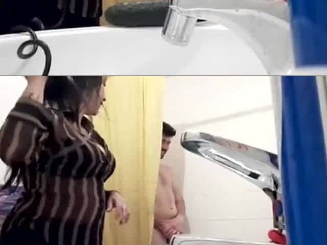 Naked mom and stepson in the bathroom. Anal and blowjob