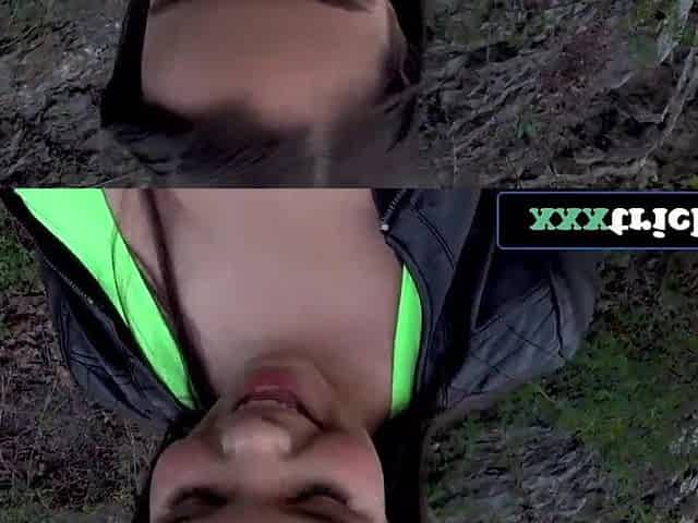 Public Agent Tiny boobed angel bangs in woods