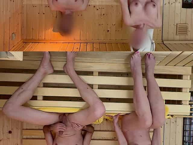 The blond entered the sauna and grabbed my rod
