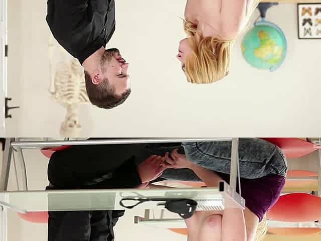 Quickie fucking on the table ends with a facial for Rebecca Vanguard