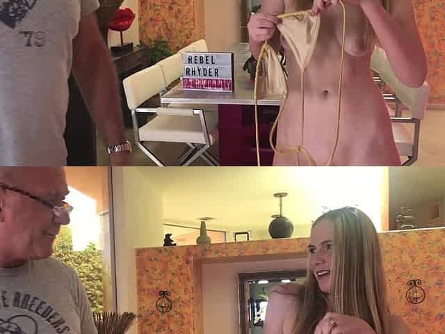 Cock-hungry blonde slut Rebel Rhyder begs her bangers to gape her wide