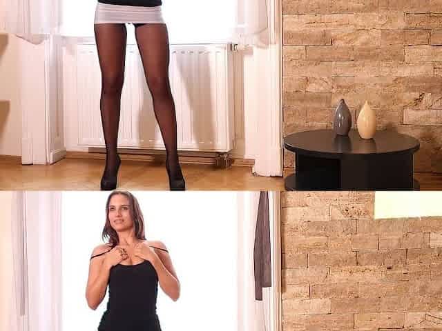 Tight Hot Pussy Cheating MILF Wife´s First Shooting for Porn in Black Pantyhose with NO PANTIES