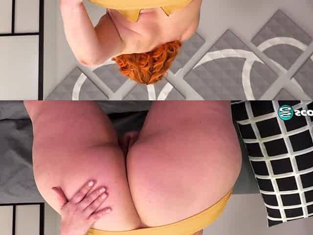 Redhead solo model with nice ass fingering her pussy