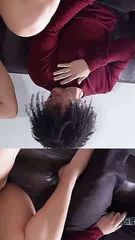 Black stepsister Demi Sutra gives a good blowjob for a remote control