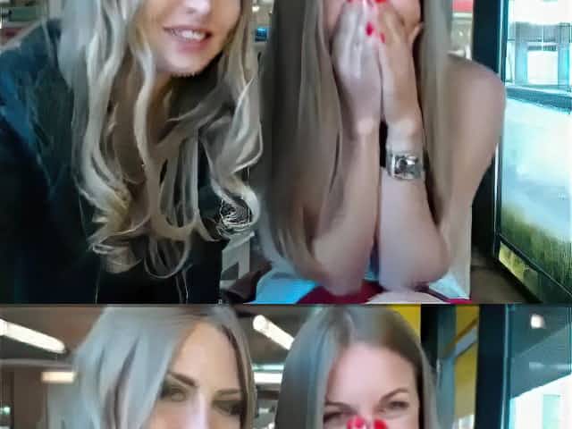 Morgan Moon and her friend ride two dicks in a restaurant