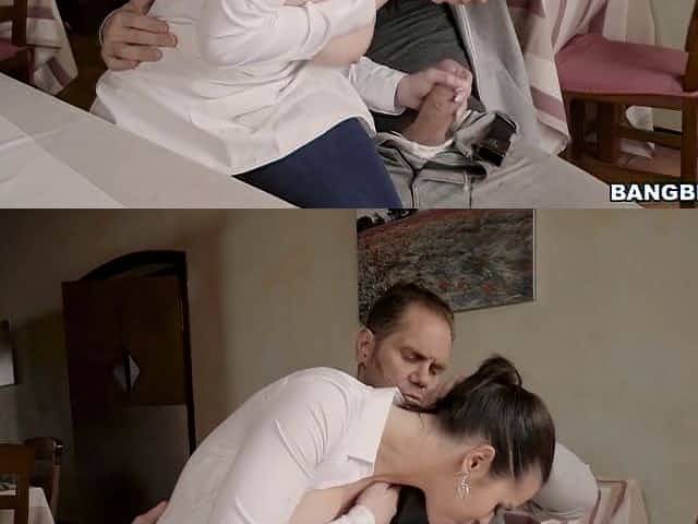 Husband empties the restaurant and fucks his wife Kleio Valentien