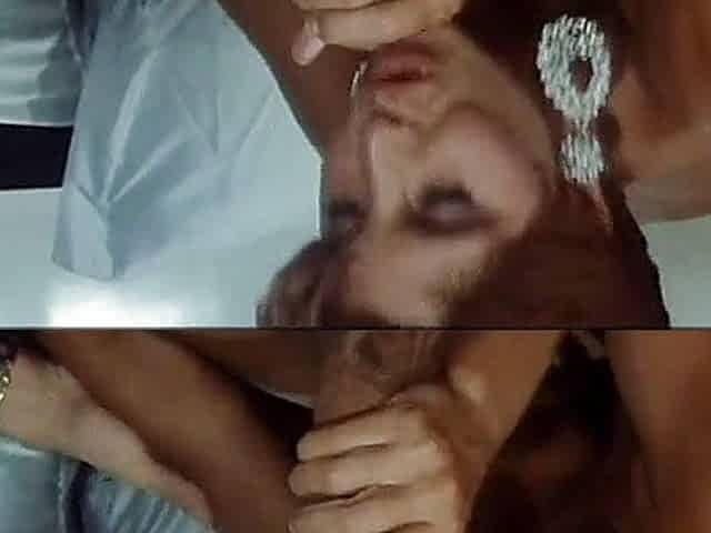 Dark haired teen blowing hard cock that slammed her pussy and ass hole