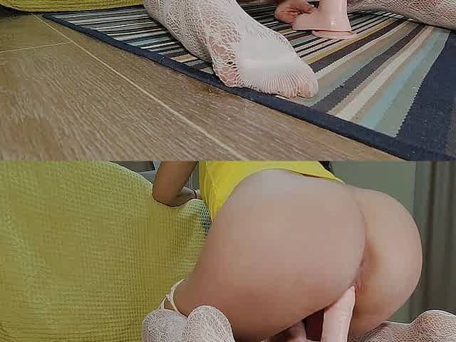 My horny ass riding dildo with fishnet pantyhose