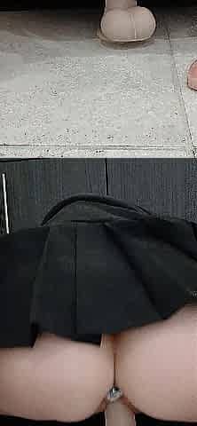 Risky riding and squirting on a sex tool in the McDonald's restroom near people behind the door