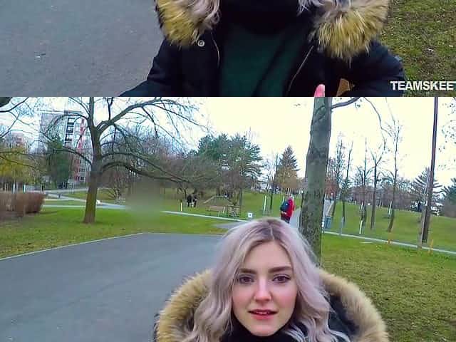 Busty Blonde Fucks Tight Pussy in Public Risky Cum