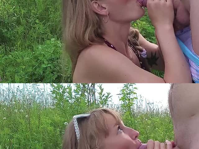 Helga Bosk. Risky sex on the field next to the road