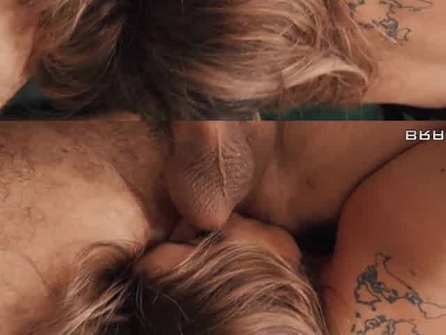Tattooed Blonde Deepthroats Her Roommate's Cock