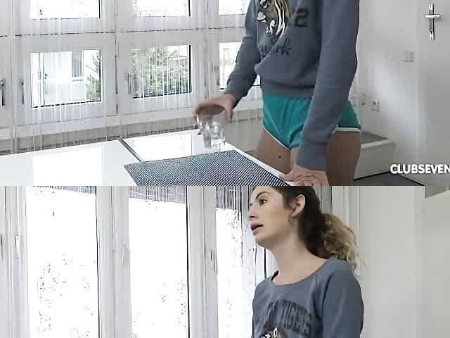 Fucks blonde teen with rope and cum behind