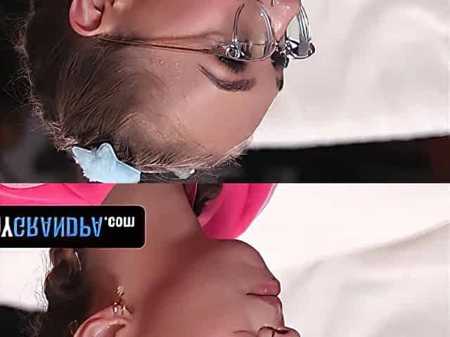 Perky breasted teen with glasses buries a long dick inside her peach