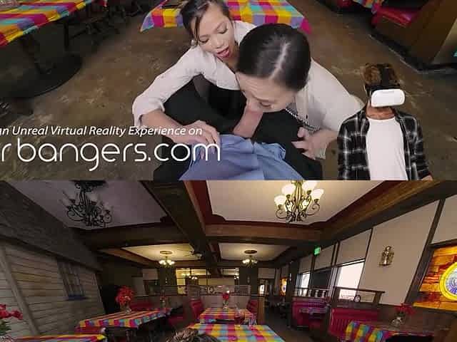 Vina Skyy - Rough Threesome Sex In Restaurant With