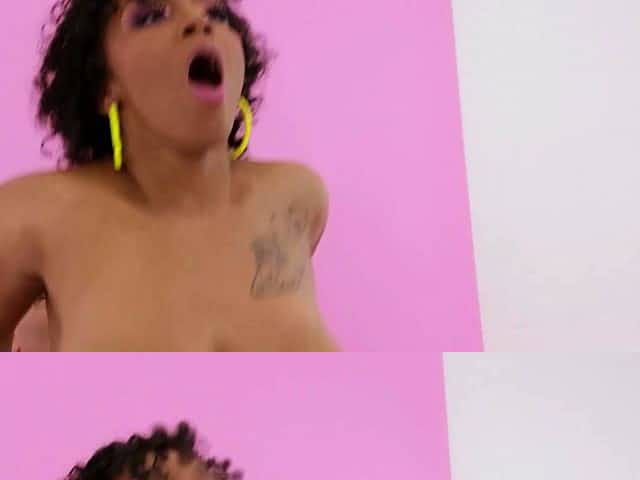 Busty black teen with round booty rides