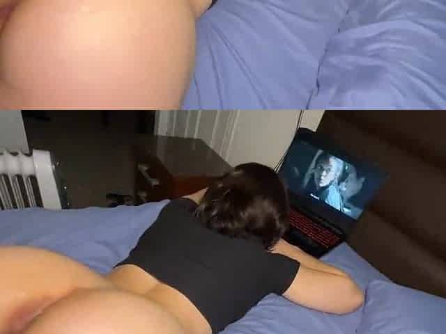 My 23 yrs old blond GF playing with her titties and twat in belt and I fck and fingering her booty
