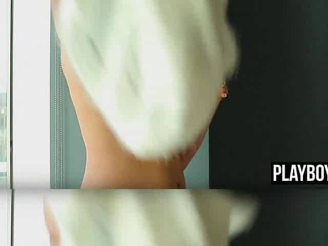 Giant natural melons and firm round booty redhead Playboy model solo