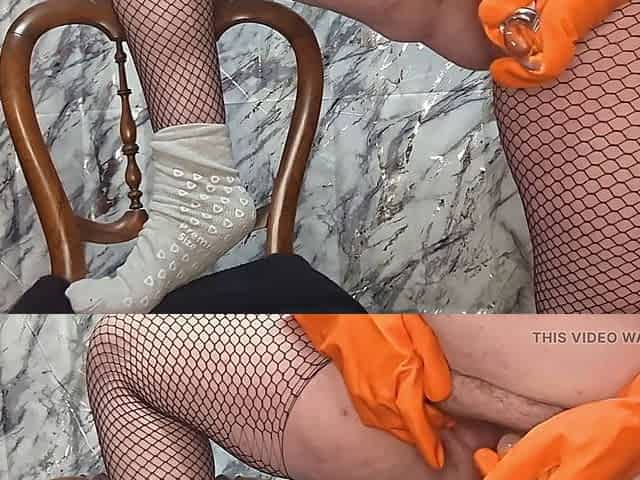 weenie and prostate massage in rubber gloves with glad end
