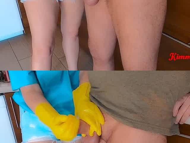 Her Pink Rubber Gloves Made My Cock Explode Cum Spray