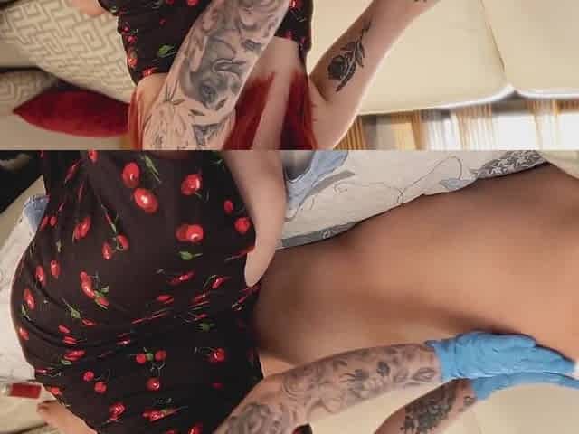 Latex Kinky Hotty Playing with her Pierced Cunt with 6 Golden Rings Solo Masturbation