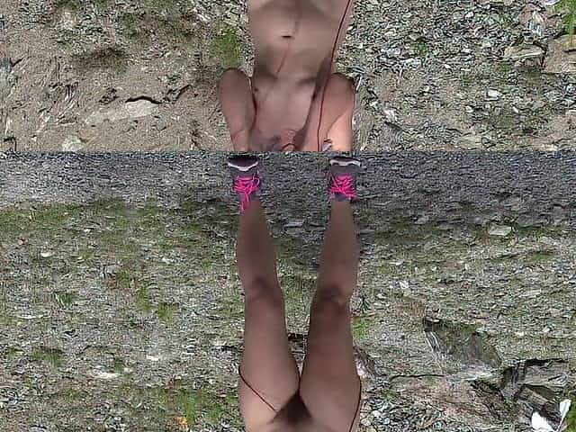 Peeing outdoors in pantyhose with bare feet