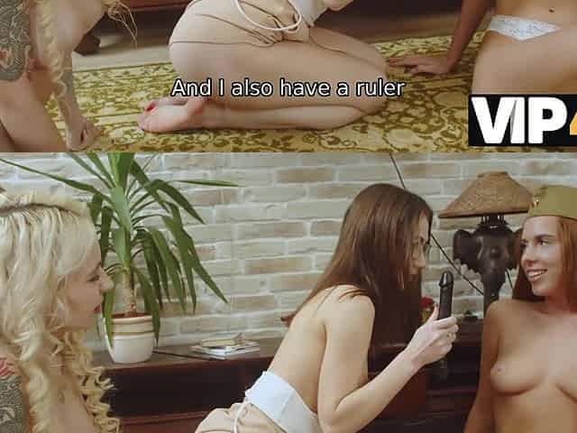 VIP4K. Hot chicks pretend they are postwar fighters with dirty minds