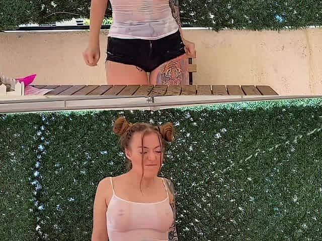 Hot cute sexy kissing lesbians in the pool