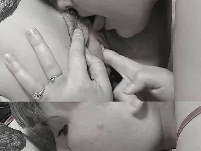 Hot brunette gets her wet pussy licked by a lesbian couple