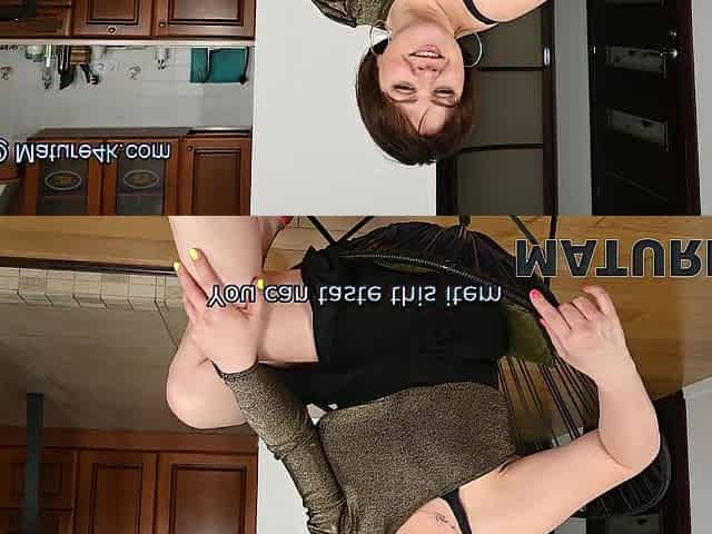 Julia strips naked in her kitchen after breakfast. Julia is in her kitchen with her white dress on today, The dress comes off an