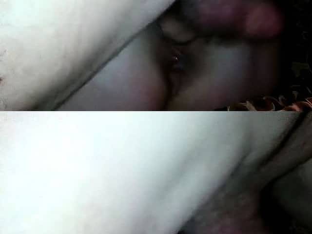 Girlfriend in panties with an open pussy got a double big cumshot in her pussy