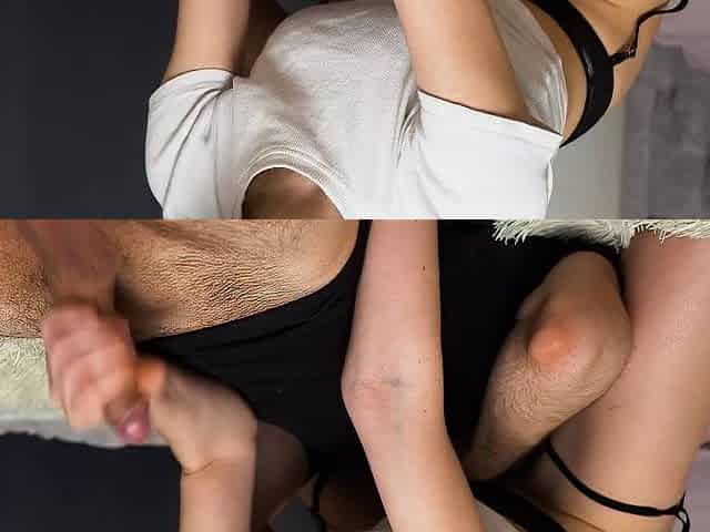 My juicy MILF wife in sexy lingerie got her pussy licked and jerked off to me