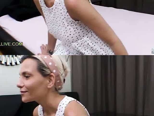 Doll in a little dress pleasures herself until she squirts