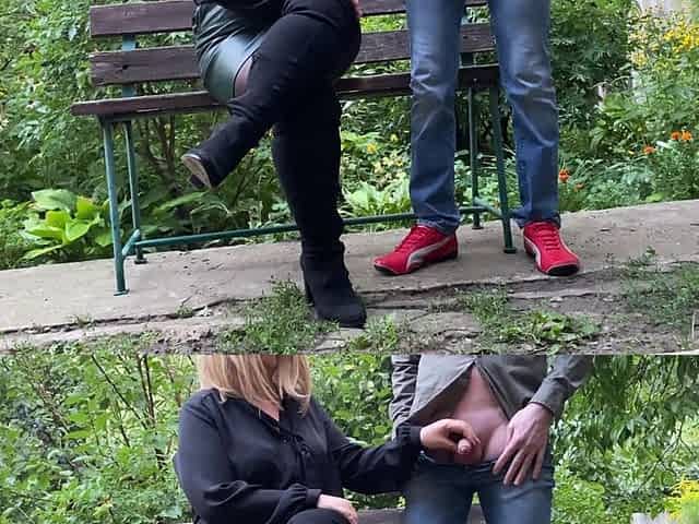 Curvy Mother-in-law Jerks off Her Son-in-law in the Park While Reading a Book