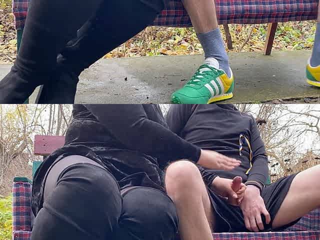 Double orgasm in the park near the airport