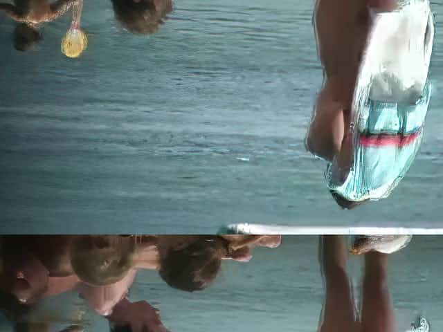 MILF dressed in leggings pissing in the river