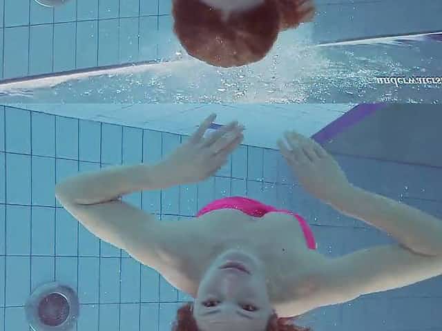 Beautiful redhead hairy pussy underwater