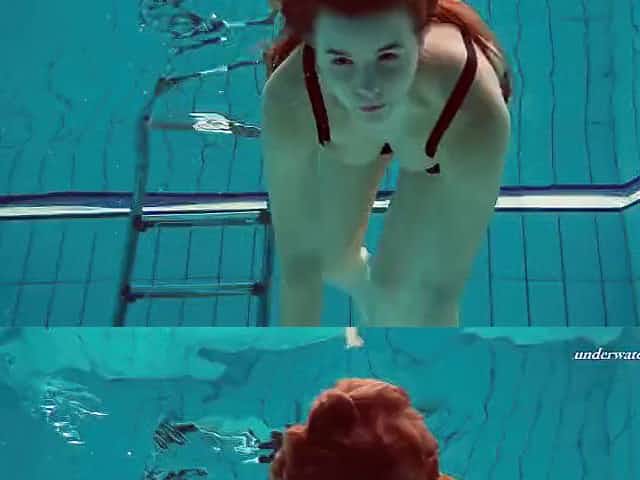 Beautiful redhead hairy pussy underwater