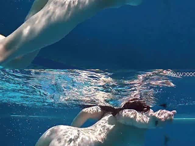 Hawt Hotties with Large Boobs Swim Underwater in the Pool