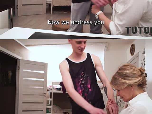 TUTOR4K. Young man pulled pants down baring erect cock for private teacher
