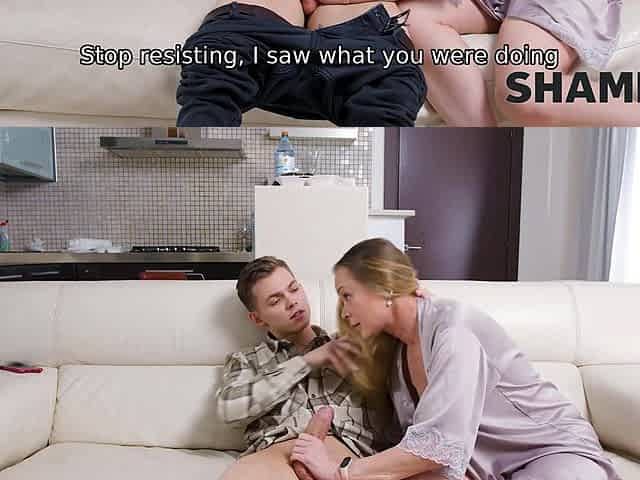 SHAME4K. Boys balls are swollen and the mature teacher helps him cum