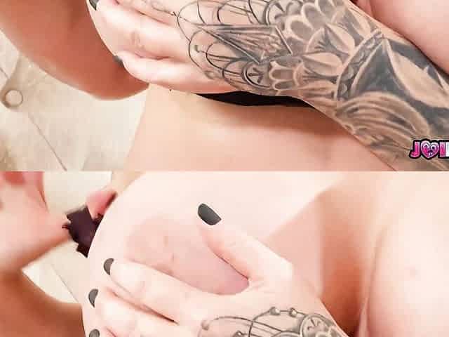 Tattooed MILF Ryan Conner plays with massive tits while having sex